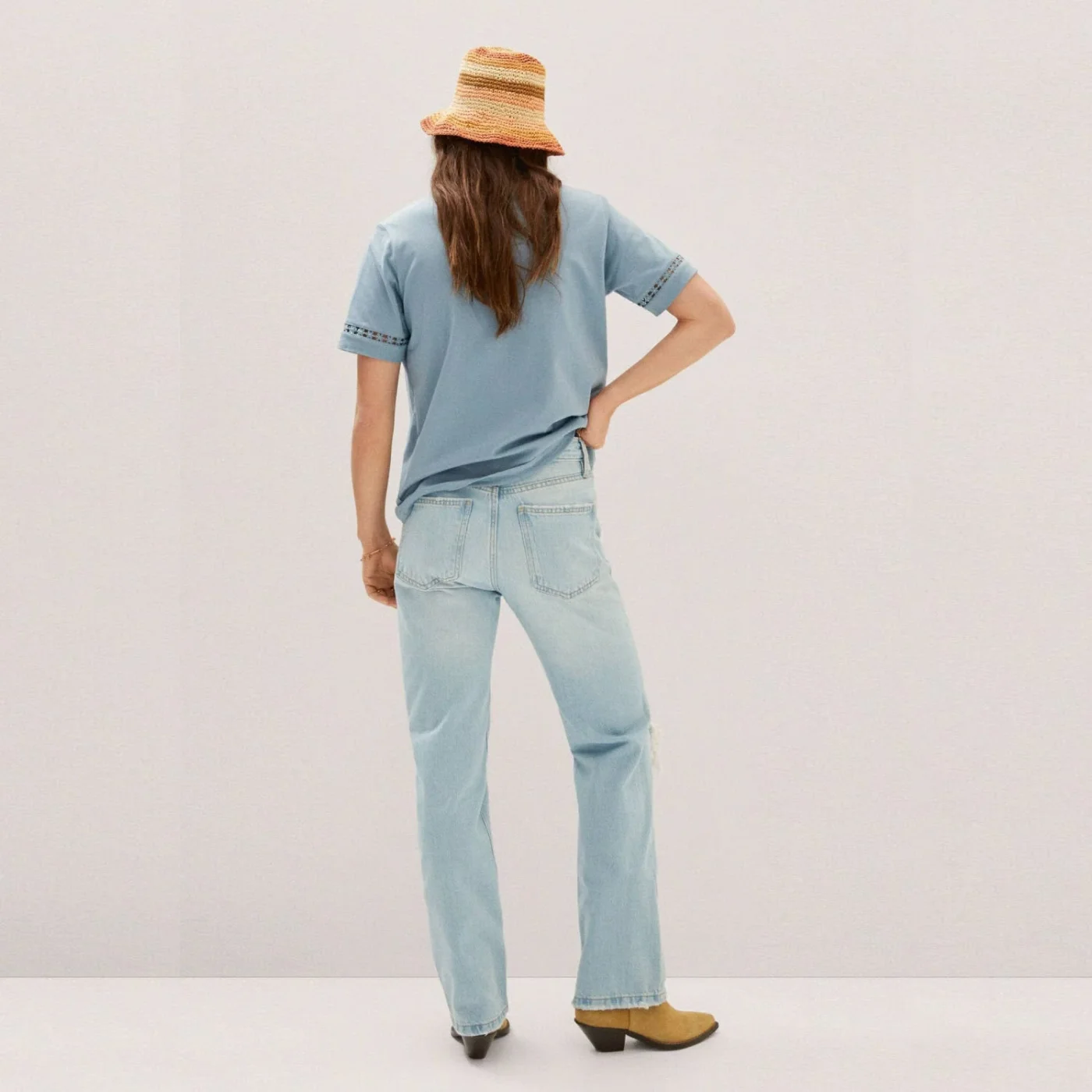 Embroidered accent details. Soft cotton fabric. Casual, comfortable fit. Perfect for everyday wear or casual outings.