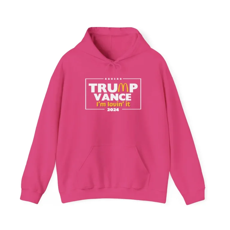 Show your bold style with the Trump Vance “I’m Lovin’ It” Hoodie, blending comfort and personality.